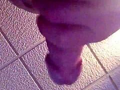 Masturbând pula mare cu ciorapi uzi