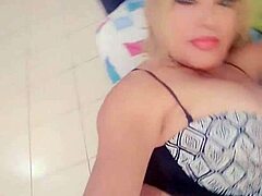 Beautiful trans woman in crossdressing enjoys solo masturbation with toys