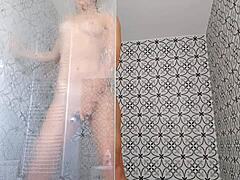 גמירה בתוך, ציצים טבעיים, פטמות נפוחות, חדר אמבטיה, רחצה, כוס, מקלחת