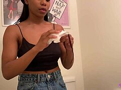 Обожавам как секси милф тялото ми дразни в тесни деним шорти, показвайки бял танга кит
