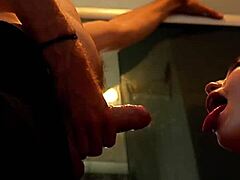 Drsný blowjob v veřejný záchodě