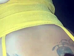hot blonde teen 18+ with tattooed butt flashes pussy and tits and rides dildo on public lake outdoors