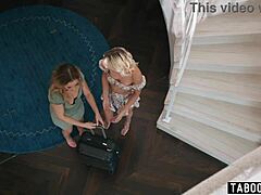 i'm curing my stepsister's flu by scissoring her big ass to orgasm, kissing and dirtying stepmom's new sofa with horny teen sex