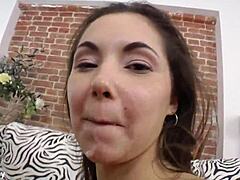 Paty Angel watches the Olympics while getting cum on her face from her lover's assfucking