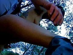 enjoying a peaceful blowjob session in the woods with nature around