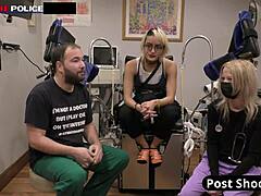 Nauczycielka lekcja seksu w pończochach z wytryskiem