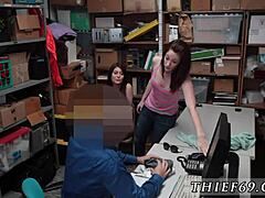 Cute Asian and UK teen 18+ caught shoplifting, get fucked by horny mall cop.