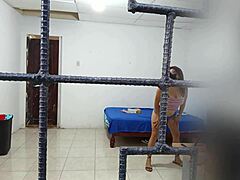 Jade, a pretty Brazilian housewife, flashes in lingerie at home