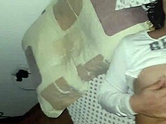 that sexy brunette is riding and showing off her huge natural tits while parents sleep nearby.