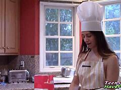Teen with Small Tits Deepthroats Huge Cock for Extreme Multiple Cumshots in Mouth