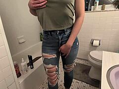 busty solo cutie urinates with toys... oh man, her big tits jiggle while she pees cute