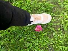 Exhibitionist with big ass strokes in public almost caught