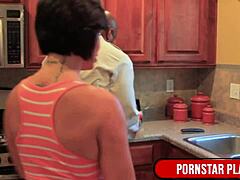 Brunett milf rider stor kuk i tabuövertagande. Missionärsballonglek retade scenen.