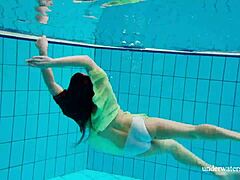 Gazel Podvodkova shines as underwater naked beauty by the pool.