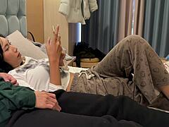 young 18 japanese schoolgirl with big ass gives footjob to classmate during homework