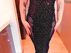 Amateur brunette pornstar in lingerie enjoys fingering on sextape with Rollie Baddie