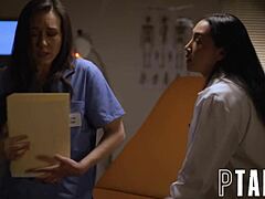 Kollega, Asiatisk, Runkeinstruksjoner, Petite, Lesbisk, Orgasme, Fitte-Dykking