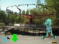 OMG, this 3D zombie babe is getting double teamed outdoors! 😱