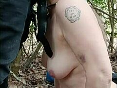 Volle slavin met grote natte tieten ontkleed en vastgebonden voor hardcore femdom door meesteres