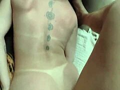 when i arrive home, woman masturbates then gives oral and begs for full anal in red sheer